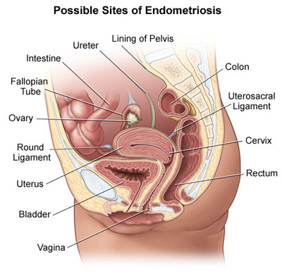 Endometriosis is a painful disease caused by endometrial tissue, which lines the inside uterus, growing in other parts of the body. About 10% of reproductive-age women have endometriosis (UCLA Health). Someone suffering from endometriosis may have patches of tissue develop around the ovaries, fallopian tube, uterus, bowels, bladder, and cavity that holds the uterus.